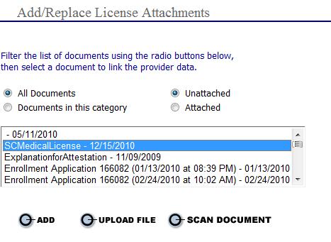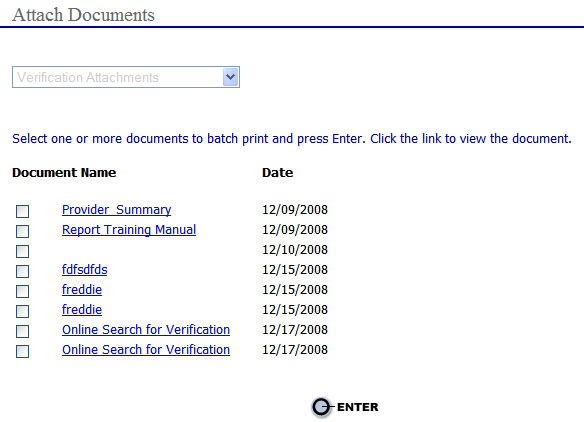 Once the selection from the drop-down is made, the appropriate documents for attachment are displayed.