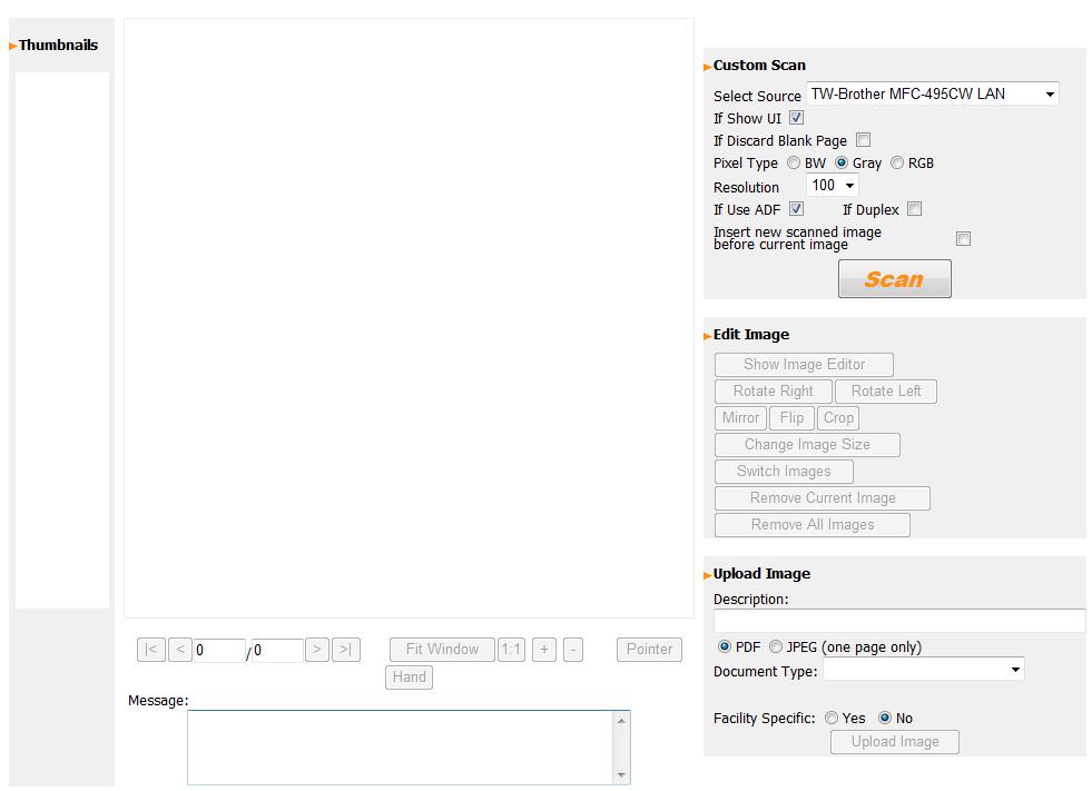 A Direct Scan Tool with Basic and Advanced web interfaces can be found on the menu under Credentialing > Provider Data > Attachments. The tools detect the TWAIN driver on the user's computer and invoke the scanning software that the user has installed. The direct scan tools may be used with personal scanners (plugged directly into the user's PC) and network scanners when the scanning software is installed on the user's computer.
