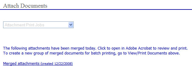Select the checkbox(s) and press the Enter button. This will merge the documents into one attachment to be printed if necessary.
