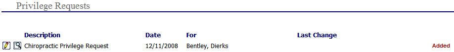 radio button next to the provider's name to open the " Add Privilege Request" page.